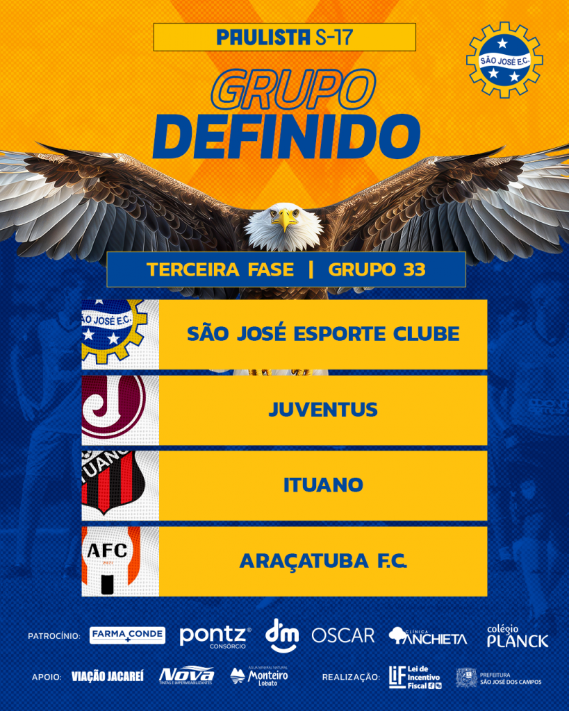 O São José conheceu na tarde desta terça-feira (19) os seus adversários na 3ª fase do Campeonato Paulista sub-17. Os Meninos da Águia estão no grupo 33 ao lado de Juventus, Ituano e Araçatuba FC.