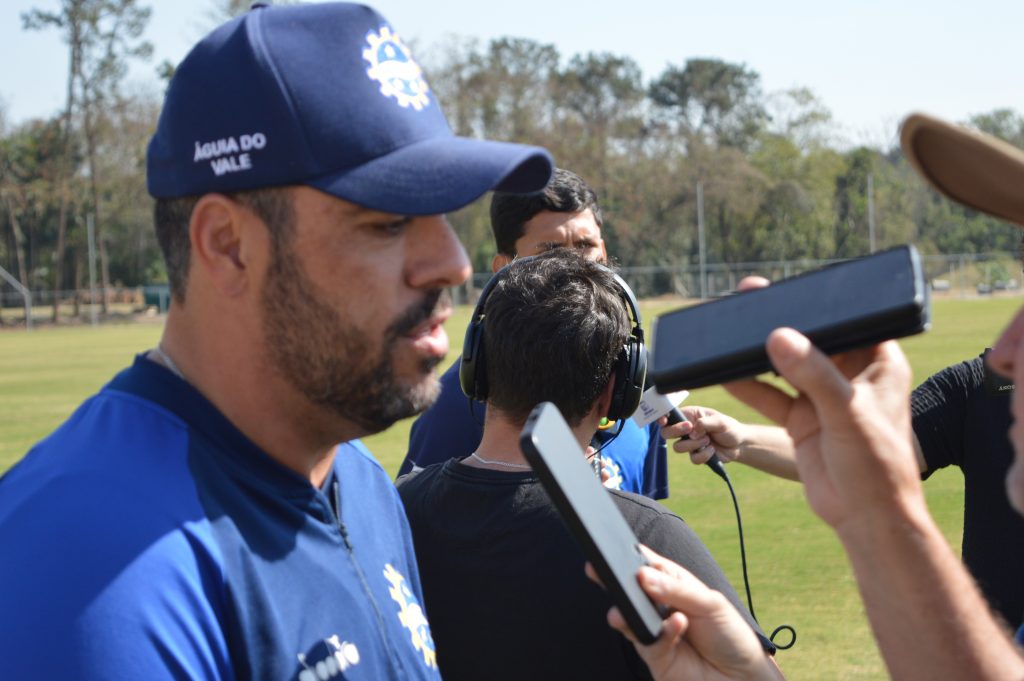 Hoje também foi dia de atendimento da imprensa antes do início das atividades. O técnico Marcelo Marelli e o volante Jéferson Lima conversaram com os jornalistas de rádio e TV.