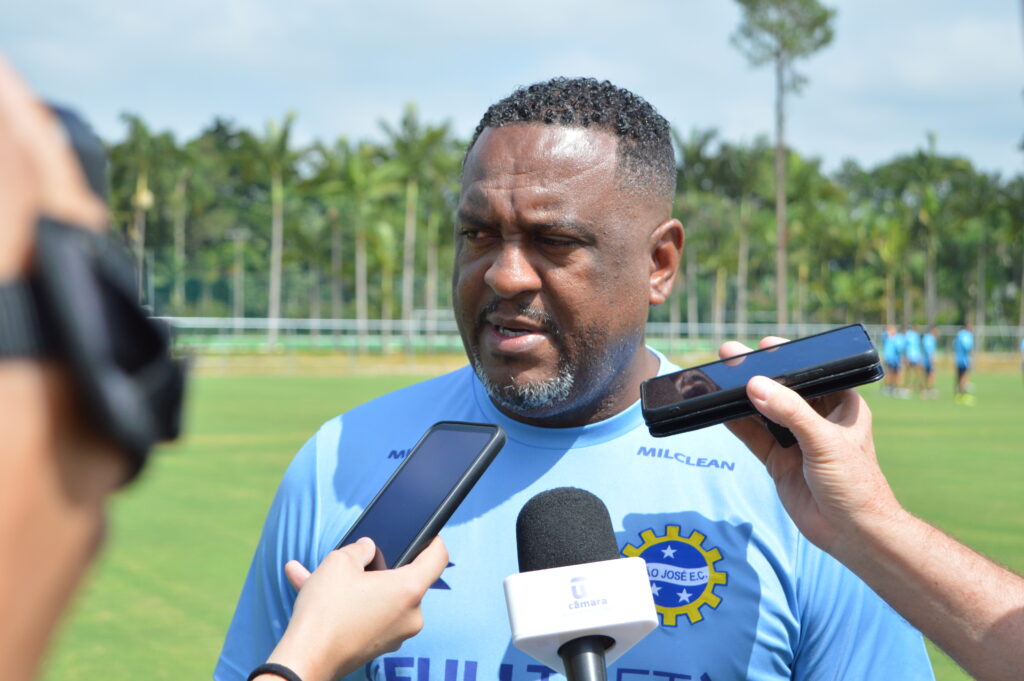 Técnico Jorge Castilho atendeu os jornalistas no treino desta quinta (foto: Celso Gomes SJEC)