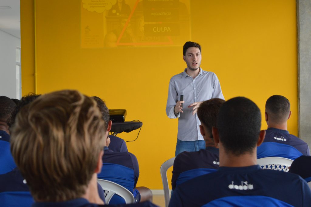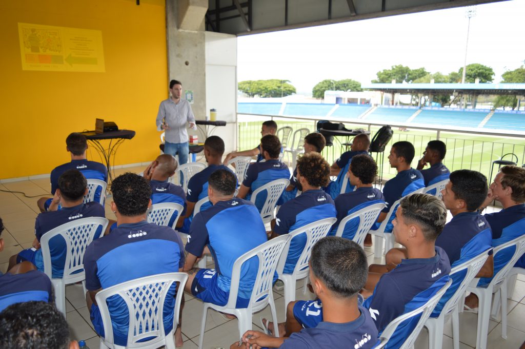 Na tarde desta sexta-feira (12), o elenco profissional do São José e todos os profissionais do staff da comissão técnica participaram de uma palestra com o Dr. Lucas Berard, que é dentista e professor da USP e faz parte da equipe da comissão de controle de doping da Federação Paulista de Futebol.