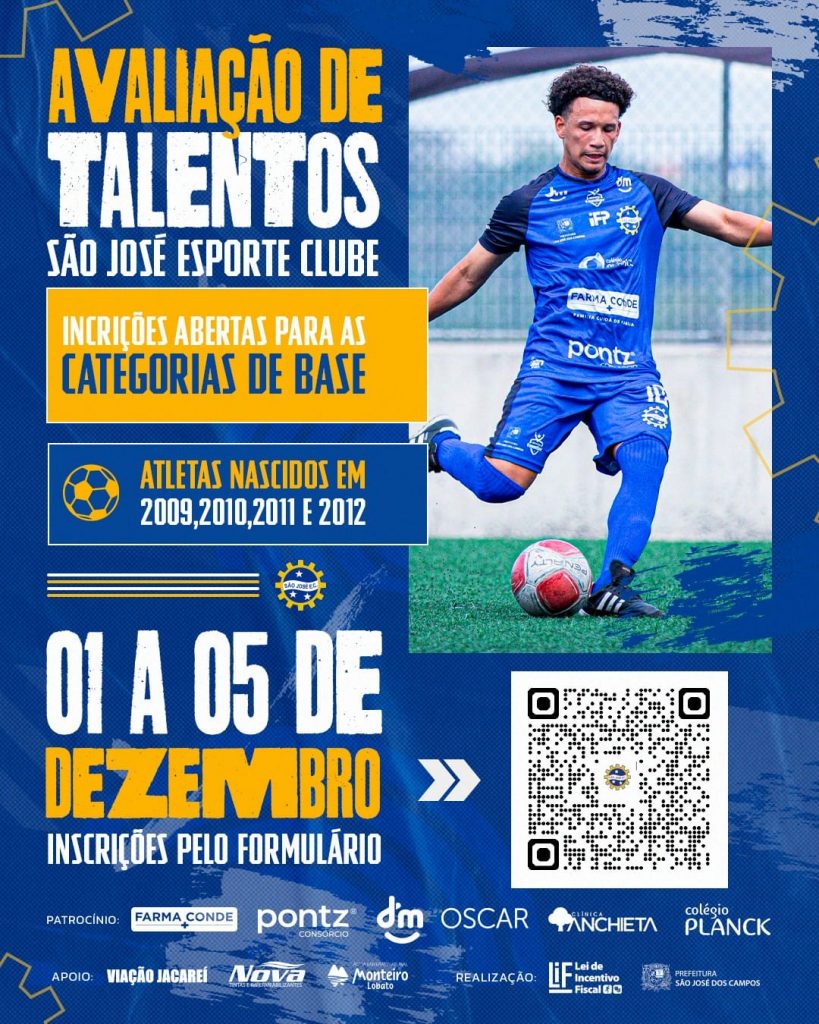 O São José Esporte Clube anuncia a abertura das inscrições para a seletiva de possíveis novos atletas das categorias Sub-15 e Sub-17 que representarão o clube nas competições oficiais de 2026. A iniciativa faz parte do trabalho contínuo de fortalecimento da base e de valorização de jovens talentos da cidade e da região.