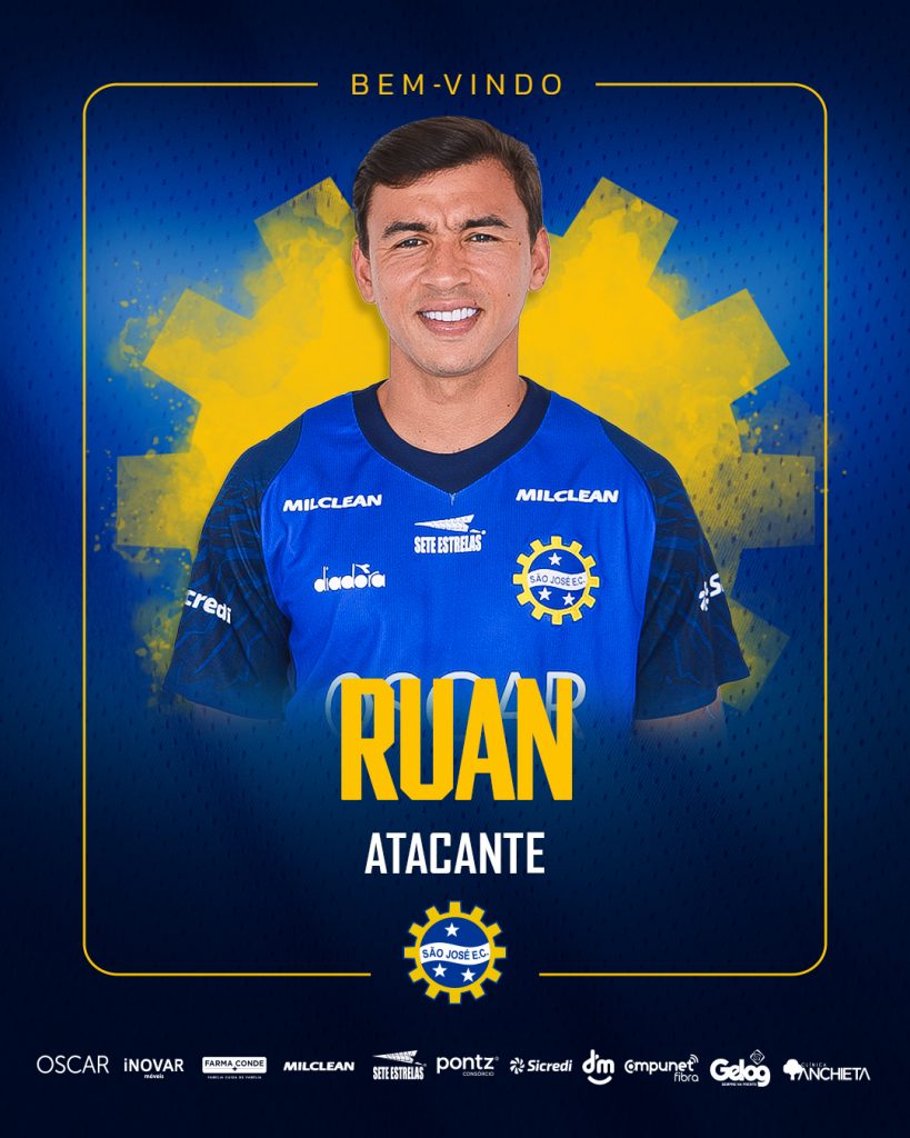 O São José comunica a contratação do atacante Ruan para a disputa da Série A2 do Campeonato Paulista de 2026. O jogador, que atuou pelo Floresta-CE em 2025, já está integrado ao elenco e à disposição da comissão técnica.