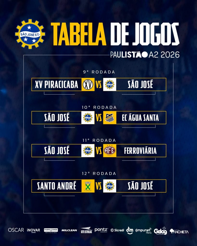 Confira a sequência de jogos do São José na série A2 de 2026:
